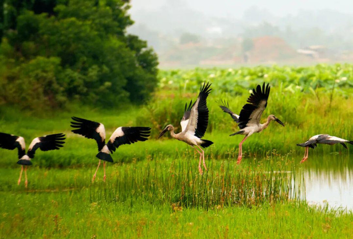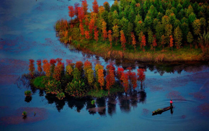 候鸟天堂,鸟在天上飞,人在画中游