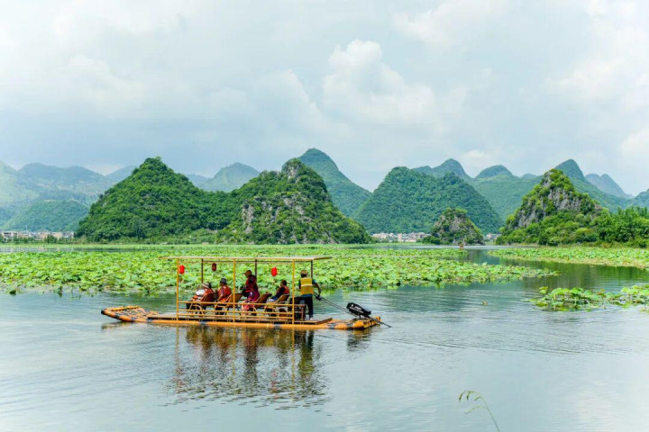 普者黑西线(乘竹筏):赏岩溶湿地、游候鸟天堂,玩转水墨仙境,闯入喀斯特诗意画框。乘坐竹筏体验普者黑喀斯特高原湿地,在波光粼粼中感受大自然最细腻的笔触,在这片喀斯特诗意画框中勾勒出无尽的遐想与浪漫。