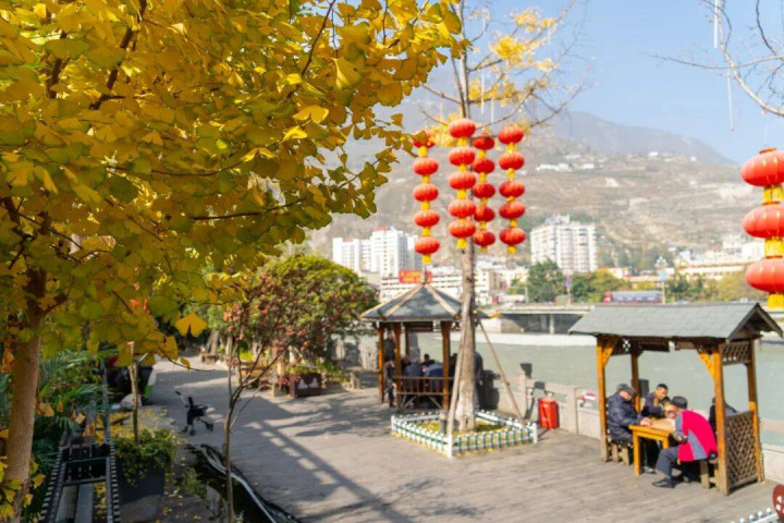 西羌文化街的银杏更添生活气息。阳光透过叶片洒下光斑,老人坐在树下闲聊,孩子追着落叶奔跑——每一幕,都是冬日里最美好的日常。