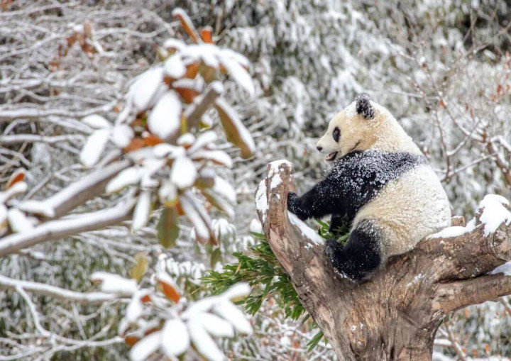 每年冬天,当初雪落满卧龙,整个山野银装素裹,连卧龙大熊猫苑神树坪基地里的“滚滚”们也沾满“糖霜”。