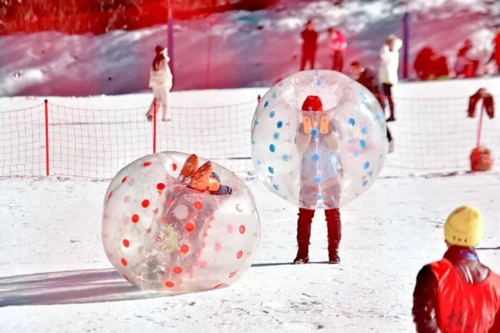 不管是潇洒转弯还是摔个“屁墩儿”,都能在白色坡道上笑出欢响。