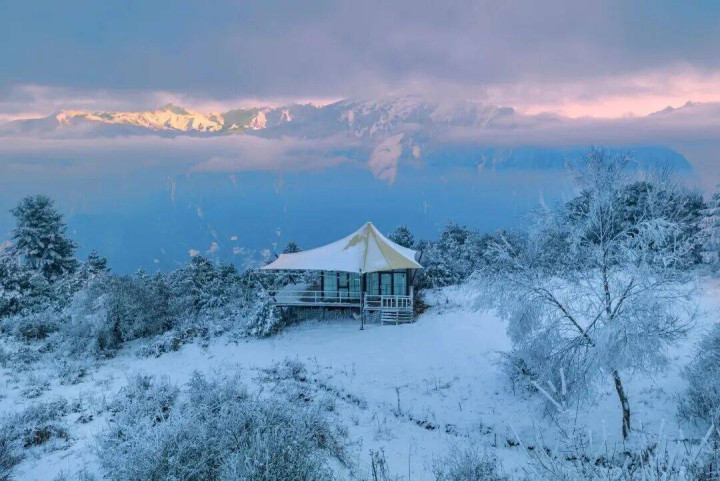 在这里,你可以泡着私汤看雪花飘落,清晨被阳光唤醒,推窗就是雪山日出——这才是冬天该有的浪漫模样。