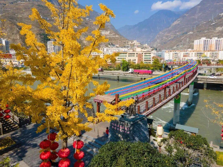 汶川的冬天,银杏依然耀眼。它们伸展枝丫,与羌寨、河流共同构成一幅斑斓画卷。
