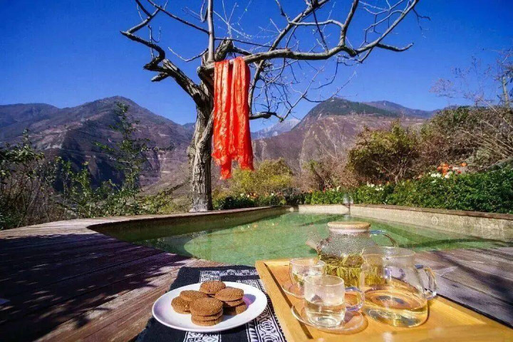 这里的温泉,取自山泉水,融入了羌药配方,打造出独特的古羌药泉。3个室内大池、7个室外小池,随心选择。