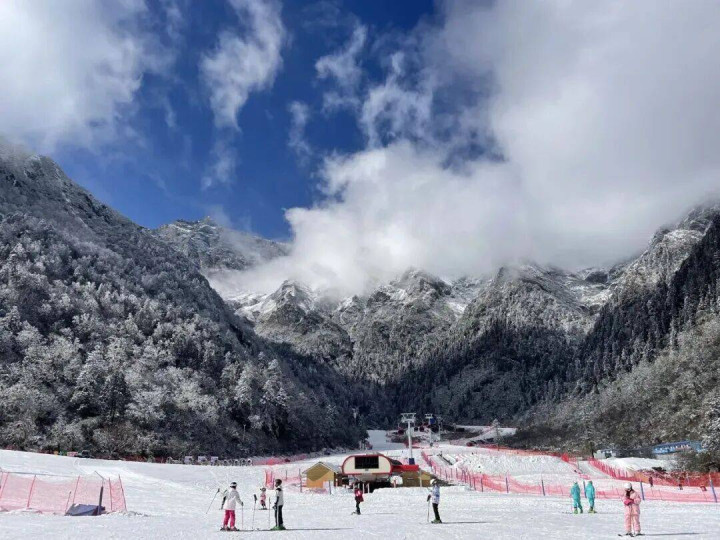 从成都出发2.5小时直达,初级道、进阶道任你挑选。这里的雪质松软,像踩在云朵上~