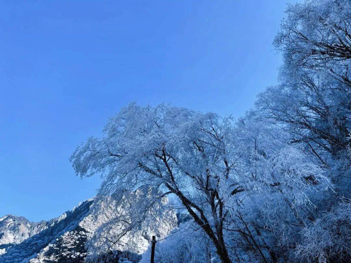 “天上有雾,林中有凇”。待到深冬时节,雪花纷飞,汶川的绝美雾凇如期而至。