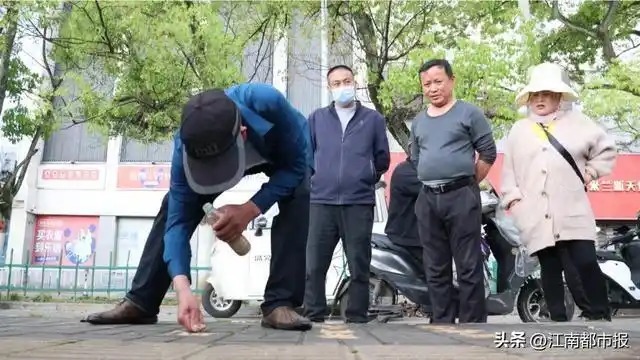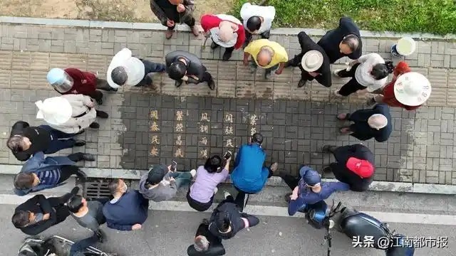一开始,杨继开只是蹲在自家院子里写写百家姓。再后来,村广场、县城琵琶湖沿湖路上,都能见到他的身影。